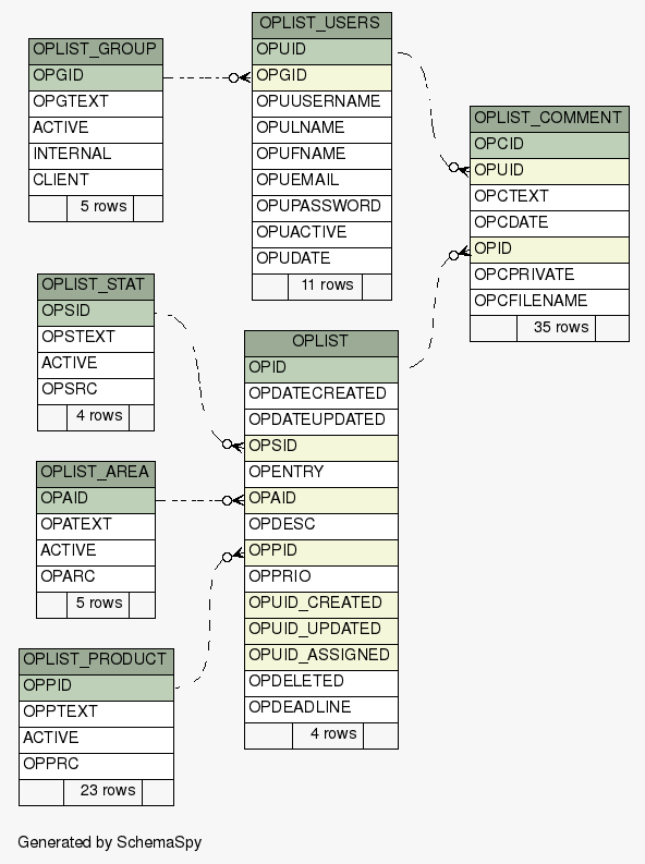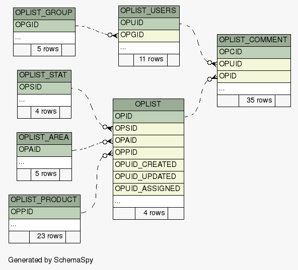 | SchemaSpy Analysis of oplist - All Relationships | Generated by SchemaSpy |