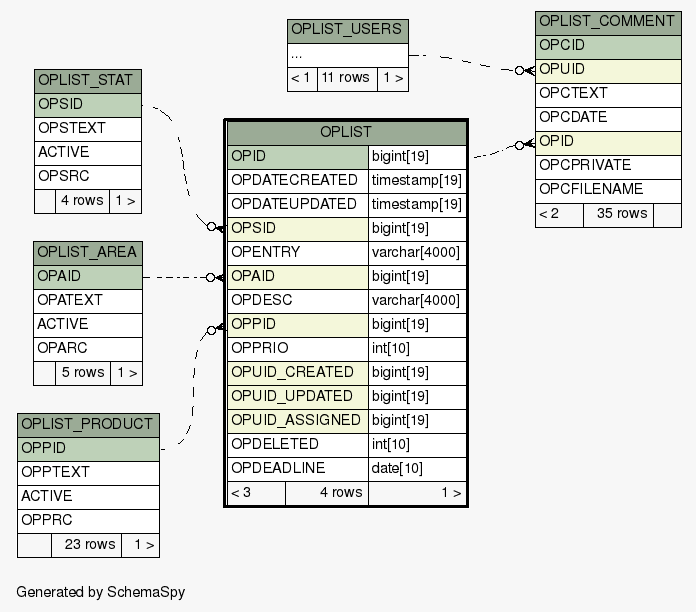 | Table oplist.OPLIST Tabelle zur Speicherung der OP-Punkte
