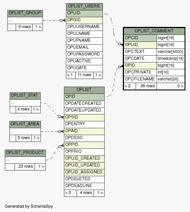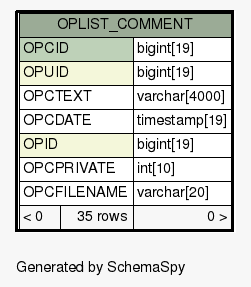 | Table oplist.OPLIST_COMMENT Tabelle zur Speicherung der Benutzerkommentare
