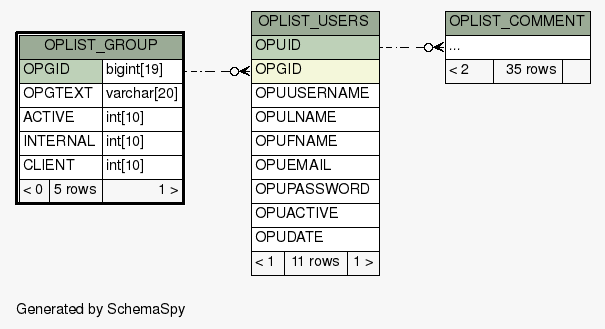 | Table oplist.OPLIST_GROUP Tabelle zur Speicherung der Benutzergruppen